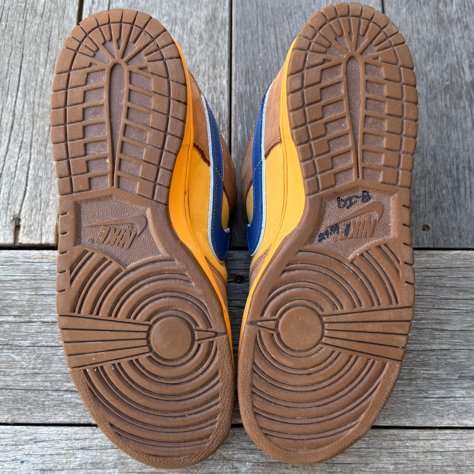 Good condition! General wear. Some marks/wear throughout the uppers. Some sep (which naturally happens on dunks/SBs, and does not affect wearability whatsoever). Bottoms are in solid condition— some drag, as pictured.