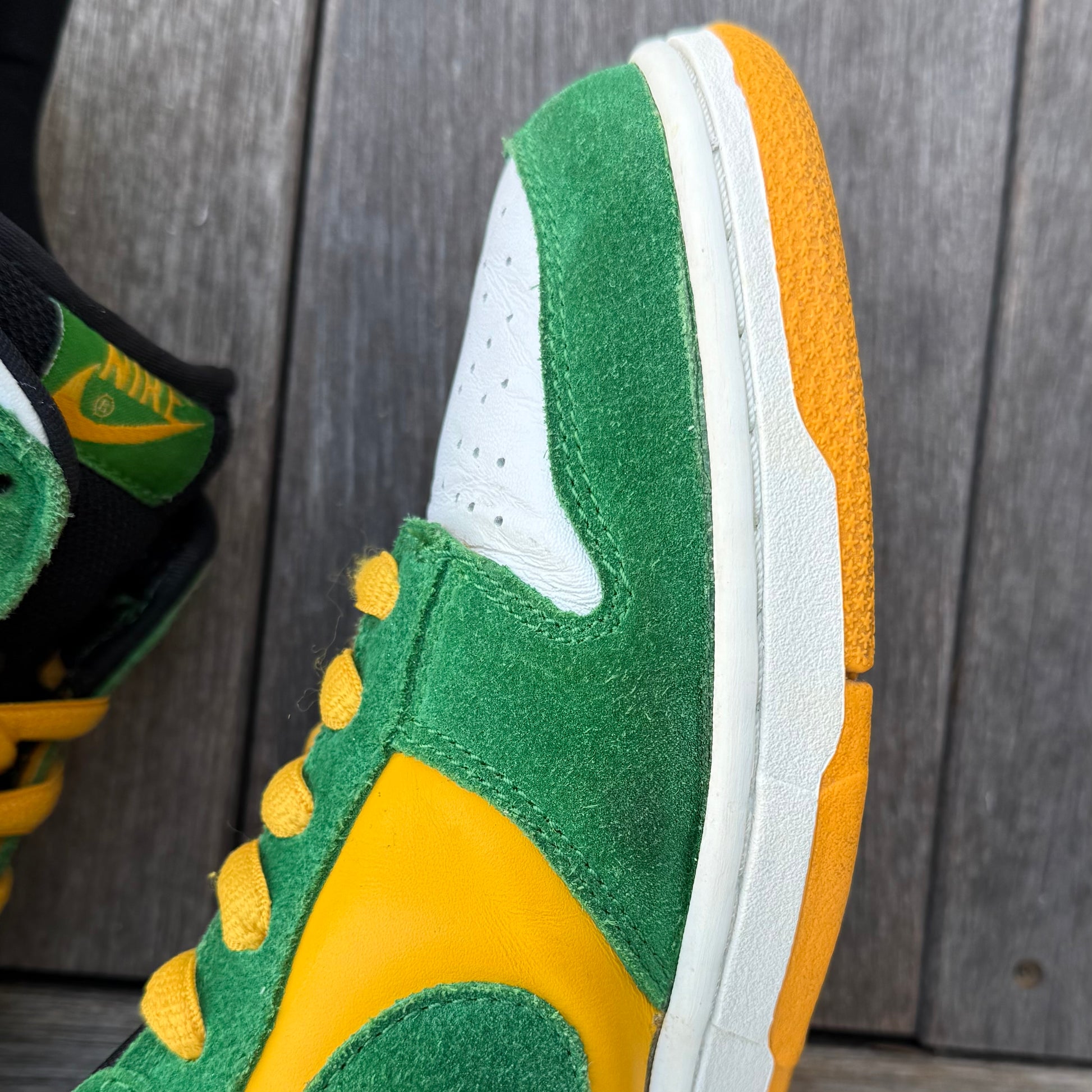 Good condition! General wear. Some marks/wear throughout the uppers, as pictured. Some sep (which naturally happens on dunks/SBs, and does not affect wearability whatsoever). Bottoms are in good condition.