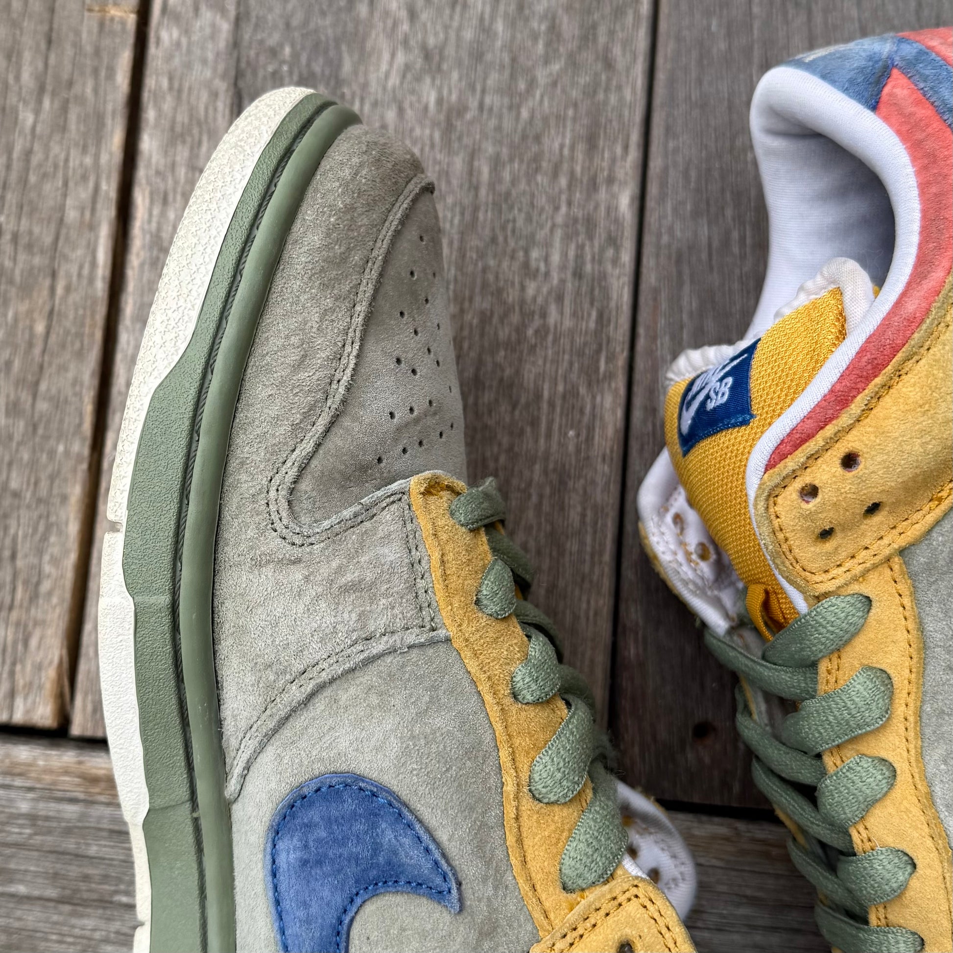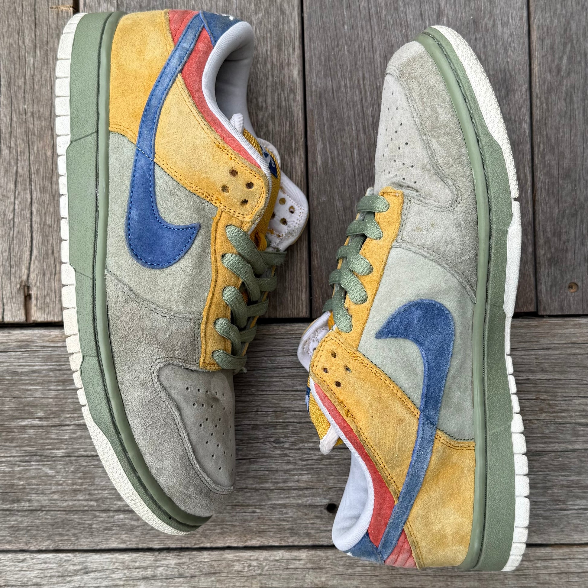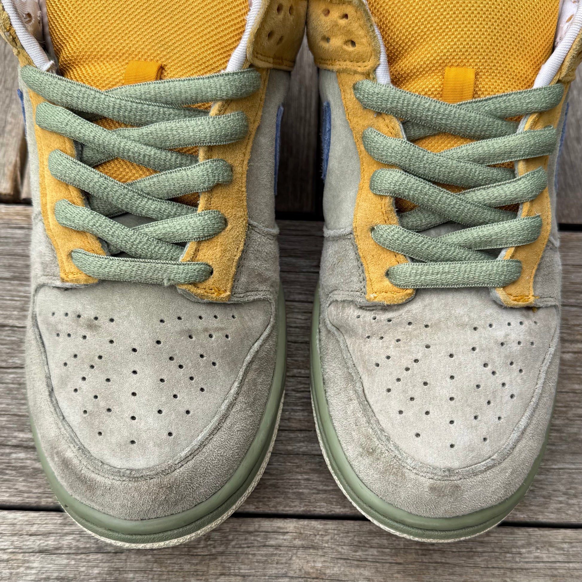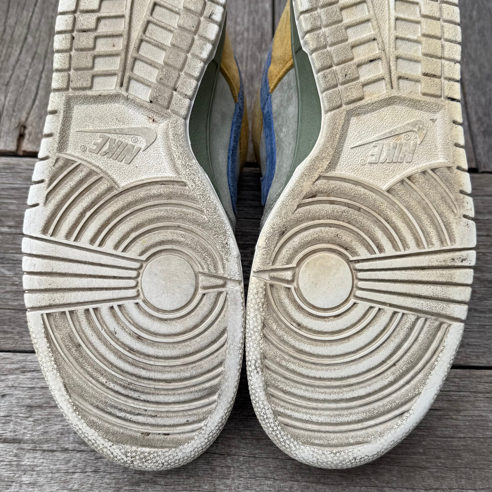 Solid condition! General wear. Some marks/wear throughout the uppers, as pictured. Some sep (which naturally happens on dunks/SBs, and does not affect wearability whatsoever). Bottoms are in solid condition.